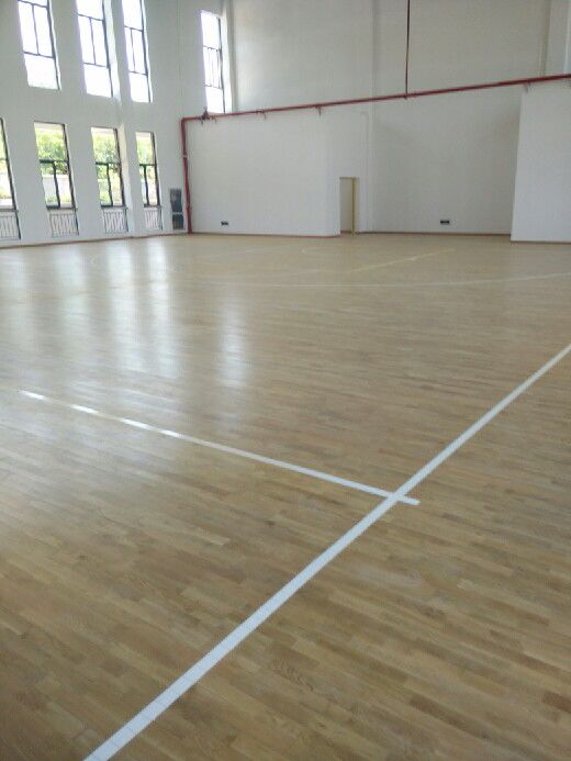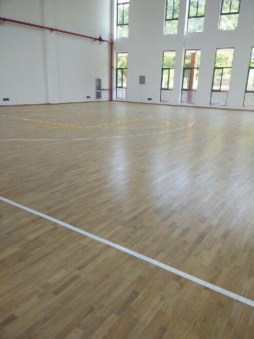 近期,我公司為學校鋪設體育館籃球場木地板,工程面積為700平方米,采用柞木A級板,單層龍骨結構。