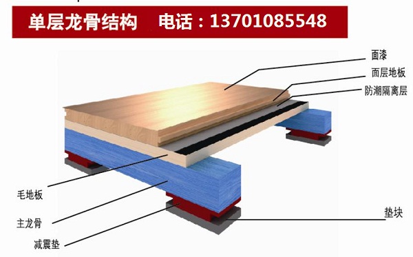 單龍骨運動木地板系統(tǒng)是由雙層木龍骨系統(tǒng)演變過來的系統(tǒng),完全符合德國DIN專業(yè)要求的體育運動木地板。即保持高吸震性和連續(xù)回彈性的固定懸浮式的運動木地板系統(tǒng),還節(jié)約了成本。單龍骨系統(tǒng)是目前國內(nèi)各體育場館采用得*多的一套系統(tǒng),經(jīng)過多年的發(fā)展,單龍骨系統(tǒng)得到客戶的廣泛贊譽。單龍骨運動地板系統(tǒng)結構基本包括以下組件(由底層到面層):