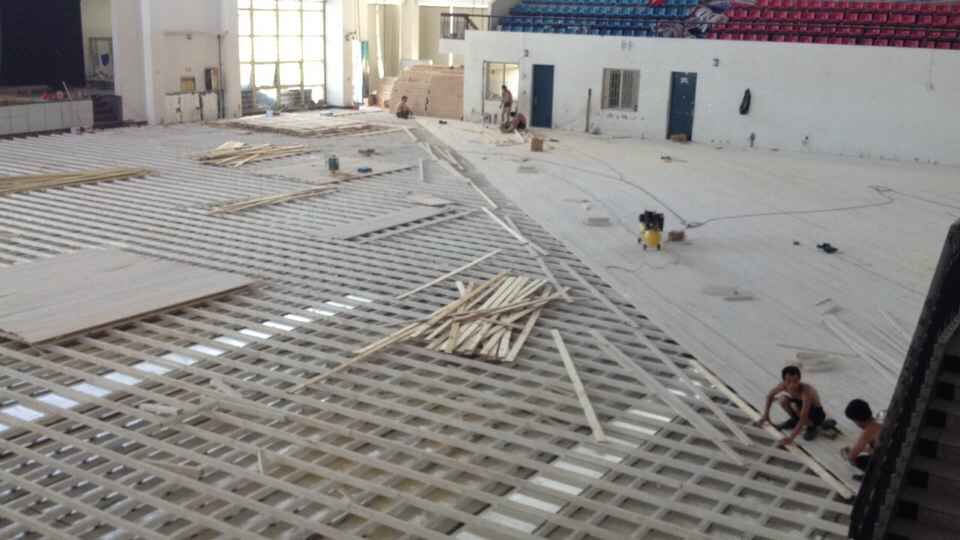 雙層夾板45°斜鋪籃球運(yùn)動(dòng)木地板系統(tǒng)